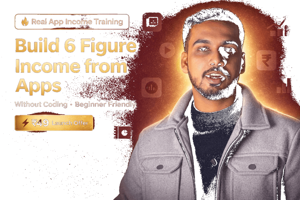 This course gives you the exact roadmap I wish I had when I started — from app idea selection, no-code & AI app building, Play Store publishing, AdMob monetization, and real scaling strategies.